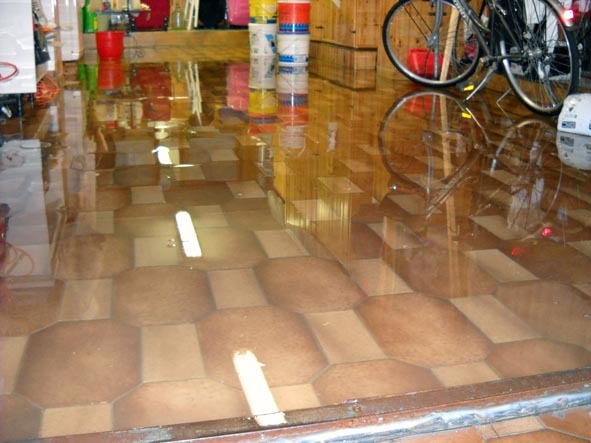Una cantina allagata dopo l'acquazzone