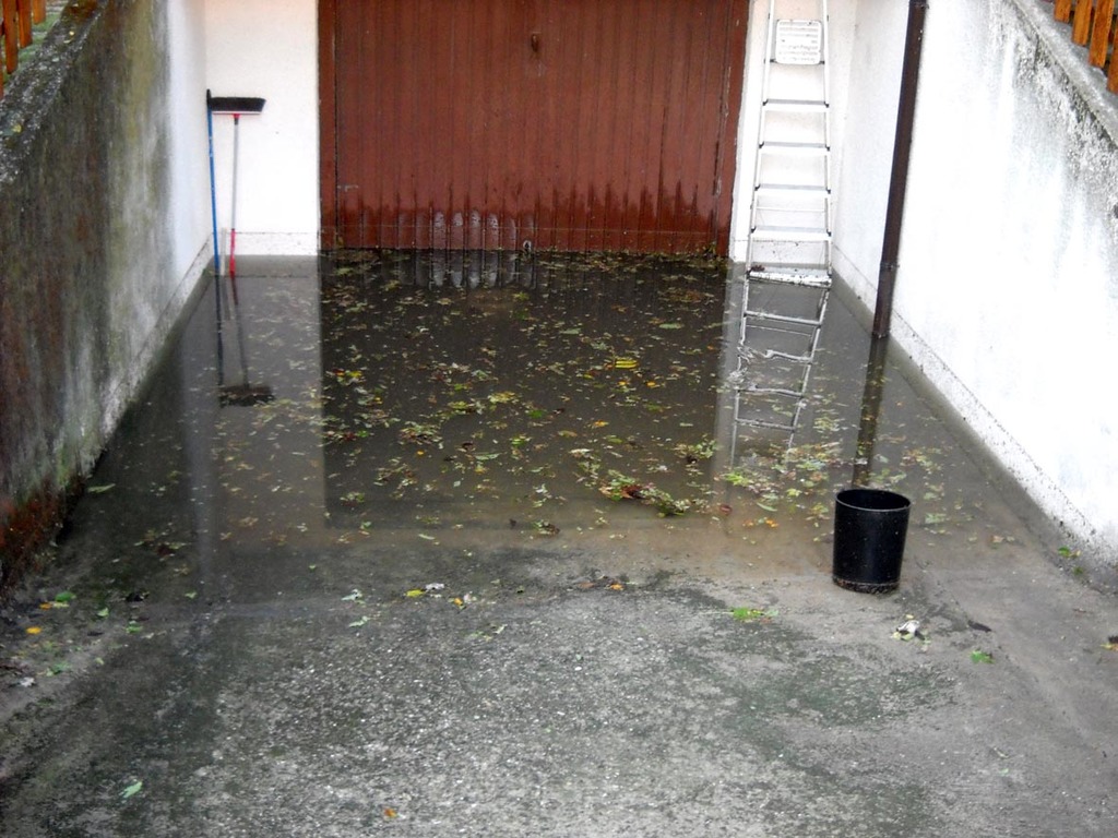 Un cortile allagato a seguito dell'acquazzone