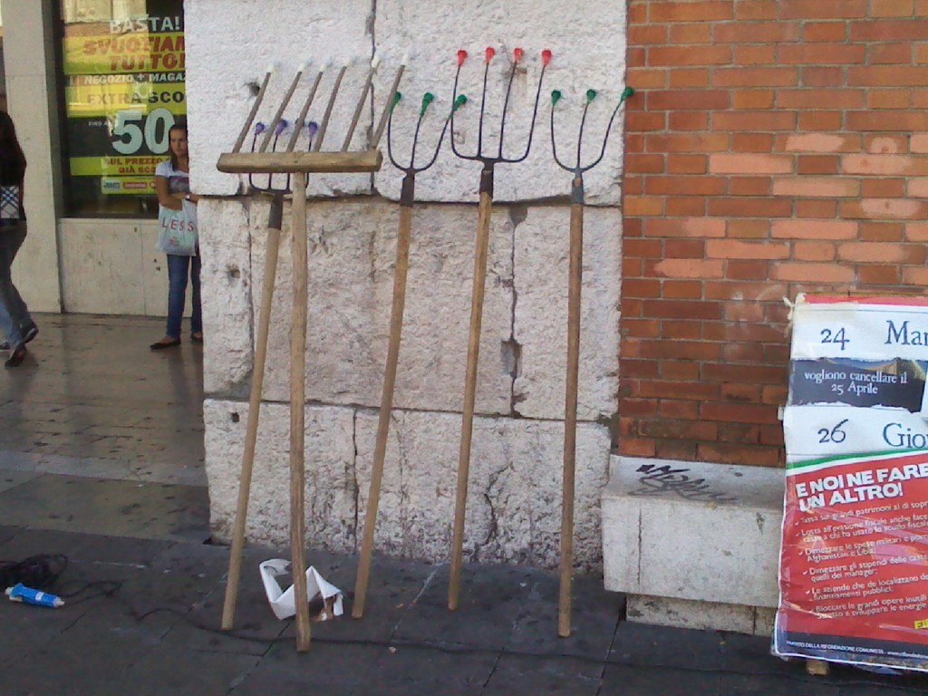Alla Federazione della sinistra “non restano che i forconi, forconi simbolici – si può leggere sul sito ferrarese di Rifondazione – per ricordare al Governo che chi calpesta la democrazia, la Costituzione e la giustizia sociale rischia appunto la cacciata con i forconi”. All’interno di quest’iniziativa, ieri pomeriggio, è cominciata in piazza Trento e Trieste un’assemblea aperta a tutti.