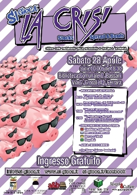 Si terrà sabato 28 aprile, presso la biblioteca comunale Bassani di Ferrara – in via Grosoli 42 – l’edizione 2012 di “Si Gioca”. Quest’anno il tema a cui verrà dedicata l’iniziativa sarà quello della crisi. Il sottotitolo, scelto dagli organizzatori, è ironicamente: “Stocks, spread e bond. Ovvero: come fregarsene della recessione e giocare l’economia”.