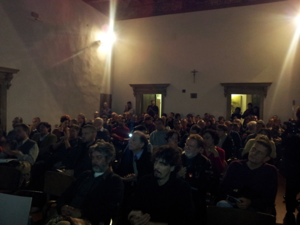 Tutto questo fino a metà della serata, che segna uno spartiacque decisivo nei contenuti e nei toni. Per una platea non abituata alla presenza di stampa e televisioni nazionali, il bisogno di regolare le questioni interne al movimento ferrarese ha avuto la meglio sulla trasparenza dell’assemblea, e alcuni rappresentanti dei Grilli Estensi hanno richiesto che fossero fatti uscire i taccuini e telecamere. “Scusa Giovanni ma lo devo dire – esordisce Tommaso Mantovani – non ti sembra di avere dato un taglio troppo mediatico a questa assemblea? Perché io oggi avevo voglia di litigare, ma non lo faccio perché poi si dirà che il Movimento è frammentato. Non c’è la libertà di fare un dibattito tra di noi seriamente”. Una questione che, paradossalmente, manda davvero in frantumi l’unità che aveva caratterizzato la prima parte della serata, con varie persone che, una volta usciti i giornalisti, si lamentano della decisione e invitano a non chiudersi al mondo in maniera settaria. Vola anche qualche parola forte, con Favia che prova a riportare la calma fino a quando è soccorso da un attivista che si impone sul resto della sala: “Io mi vergogno di voi! Il movimento 5 stelle: questa è la gente intelligente? State litigando come bambini”. Un assist decisivo al il consigliere regionale che ha la possibilità di spiegare la propria posizione nei confronti dei media: “nel momento in cui noi facciamo un’esposizione delle battaglie che portiamo avanti in Regione, e una tv vuole riprendere quello che facciamo, per me può farlo. Non è un talk show. Non mi sembra una cosa così sconvolgente, e siete liberissimi di fare tutte le critiche che dovete, perché noi non abbiamo niente da nascondere”. Mantovani spiegherà a margine che la sua presa di posizione era rivolta verso chi “cerca a tutti i costi la platea mediatica a scapito della chiarezza interna”.