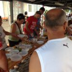 Come se si fosse rotto un incantesimo, al presidio si torna alla ‘normalità’. Riprendono calcino e trionfo, qualcuno scherza, qualcuno mima gli accordi del “Boss” quando dagli altoparlanti esce la voce di Bruce Springsteeen. La musica proviene dal dj set lanciato dalle 18.30 in poi su iniziativa dell’assessore comunale Martina Berneschi. Anche lei verso cena si fa vedere. C’è anche Elisa Trombin, sindaco della vicina Jolanda di Savoia, arrivata con un camion pieno di bevande. Arrivata ora di cena si distribuiscono le 70 portate di spaghetti all’amatriciana fatti arrivare dal ristorante Da Giuseppe. Continua la catena di solidarietà dei commercianti. Chi non può offrire direttamente prodotti commestibili, come Ferramenta Sartori o la Parafarmacia Vitali, compra le pizze e le porta al presidio. I dipendenti Coop si sono autotassati e a pranzo sono arrivati con un carrello di meloni e uno di angurie. Gli anziani del centro sociale hanno le cassette di frutta e verdura raccolte negli orti. La lista di chi si sente parte del simbolo di Copparo si allunga di ora in ora. Lo dice chiaramente un operaio al megafono: “questa azienda è una famiglia”. Di più. Questa azienda è un paese intero.