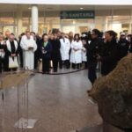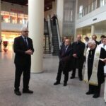 Da prima pietra a ultima pietra. Il monolite simbolo dell’inizio della costruzione dell’ospedale di Cona, consacrato nel 1990 da Papa Giovanni Paolo II, ha ricevuto questa mattina la sua nuova benedizione. Questa volta all’interno della sua ultima collocazione, l’area accoglienza del nosocomio a Cona. A cospargere con acqua santa la pietra è stato il vescovo di Ferrara e Comacchio, mons. Luigi Negri.