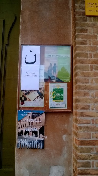 Ecco una prima risposta alla richiesta del Vescovo di apporre nelle nostre case la N di Nassarah, ossia di nazareno e speriamo che sempre più persone accolgano questo invito per tenere alta l’attenzione sulla situazione dei fratelli cristiani iracheni e siriani così duramente provati