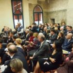 A fare gli onori di casa non poteva che essere Roberta Monti che ha presentato con orgoglio l’evento proposto dall’istituto di via Sogari, la prima scuola italiana che è entrata in Europa diventando membro dell’associazione europea delle scuole alberghiere e del turismo, per cui ha assicurato che “porteremo in alto il nome di Ferrara, dell’Emilia Romagna e dell’Italia fino al 2017”. “Siamo in un vero e proprio tempio dell’enogastronomia e del connubio con la terra – ha esordito il cavaliere Bruni riferendosi all’affermato polo scolastico dell’agroalimentare estense – e non c’è luogo migliore per formulare la nostra ricetta dello sviluppo del territorio”. Dopo lo scambio di testimone tra i due re della cucina, ‘scettro’ passato da Michele Bacillieri a Adalberto Migliari, il convegno è entrato nel vivo con la presentazione dei numeri che ruotano attorno al settore agroalimentare come comparto strategico per il nostro Paese. “L’agricoltura in Italia rappresenta 50 miliardi di euro – ha spiegato Bruni – che diventano 250 miliardi con la distribuzione, ovvero il 15% del Pil italiano, ma se si contano anche i 100mila ristoranti e le 34mile sagre presenti in Italia, i numeri vanno ancora duplicati”. Dopo la presentazione dell’agroalimentare come “vessillo di pregio nel mondo”, il dibattito è continuato dalla terra alla tavola, in un percorso che ha visto i contributi di rappresentanti dell’agricoltura, della trasformazione dei prodotti, dell’esportazione, della grande distribuzione e della tavola.