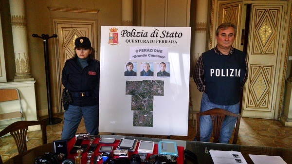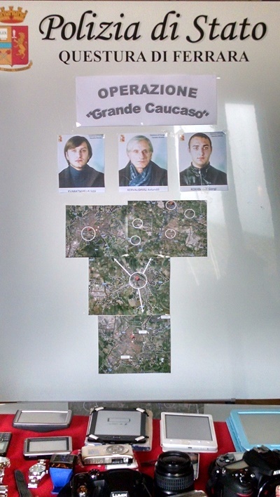 La squadra mobile estense, dopo aver appreso dai colleghi di altri luoghi che le persone specializzate in tale tipologia di furti sono, di solito, di origine georgiana, hanno iniziato a setacciare accuratamente i luoghi dei furti e a raccogliere informazioni. Una donna ha segnalato la targa di una Punto grigio chiaro con a bordo tre persone sospette e da lì gli agenti sono risaliti alla proprietaria, una donna georgiana residente a Viterbo. Ma si trattava solo di un’intestazione fittizia come risultato anche dai controlli coordinati compiuti analizzando i filmati delle telecamere cittadine sui vari passaggi dell’automobile. Incrociando i dati con le varie segnalazioni effettuate e con i dati disponibili nei terminali della polizia, la squadra mobile ha appurato che la Punto risultava spesso in movimento nel nord Italia, soprattutto a Legnago (Verona). Collaborando con la polizia municipale e la squadra mobile di Verona, gli agenti di Ferrara sono poi riusciti a risalire a un contatto tra la macchina e un rivenditore di origini georgiane – risultato estraneo da qualsiasi indagine o irregolarità – dal quale si rifornivano di tanto in tanto.