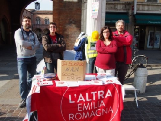 Rustici presenta anche gli effetti devastanti della crisi nel nostro territorio: “La disoccupazione in provincia di Ferrara è arrivata oltre il 14% con un picco di oltre il 53% per gli under 25, mentre 2mila nuclei famigliari sono in attesa dell’assegnazione di una casa popolare. Sono numeri che fanno rabbrividire, come è preoccupante il ritorno delle idee di privatizzazioni dei servizi pubblici, a partire dall’acqua. Per questo la nostra lista sta con i lavoratori in sciopero, con i precari che chiedono la stabilità del lavoro, con tutti i soggetti che difendono i beni comuni, vogliamo costruire un’alternativa a livello nazionale e anche in questa regione, costruendo una prospettiva che connetta tutte queste lotte e produca un nuovo modello produttivo e sociale”. E la risposta dei passanti sembra essere buona: “Molti si fermano a ritirare i volantini e a chiedere informazioni sulle regionali, altri vogliono dei dettagli sullo social strike, tutti dimostrano solidarietà alle nostre battaglie. Questo perché la situazione dei precari attraversa diverse generazioni; parte dalle donne e dai giovani ma coinvolge anche i ‘grandi’ che vivono sulla propria pelle il precariato o lo vedono nella vita dei figli, a cui vogliono regalare un futuro migliore”.