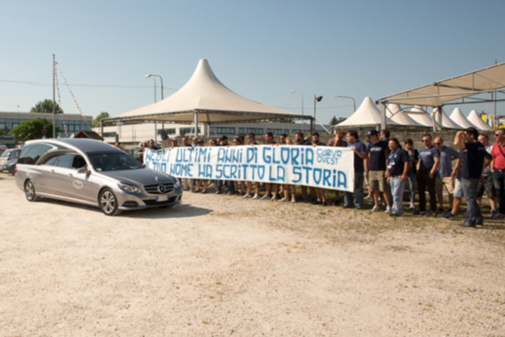 Aneddoti sportivi e personali, che poi nella vita di Fabbri erano una cosa sola, si intrecciano fuori e dentro la parrocchia. Parole commosse e sorrisi smorzati per ricordare il suo operato in campo, il suo spirito fuori dal campo, la sua tranquillità che faceva gol nel cuore di tutti quelli che ha incontrato durante la sua corsa. Parte poi il corteo per il cimitero di Poggetto di San Pietro in Casale, dove si trova la tomba di famiglia. Partono anche i cori da stadio. Gli ultimi. Per una partita che non si gioca più a Ferrara ma molto, molto, più in alto.