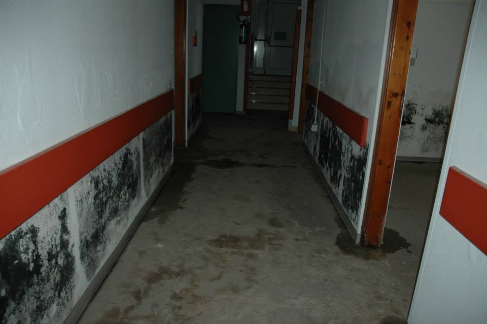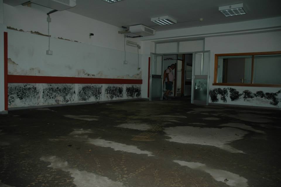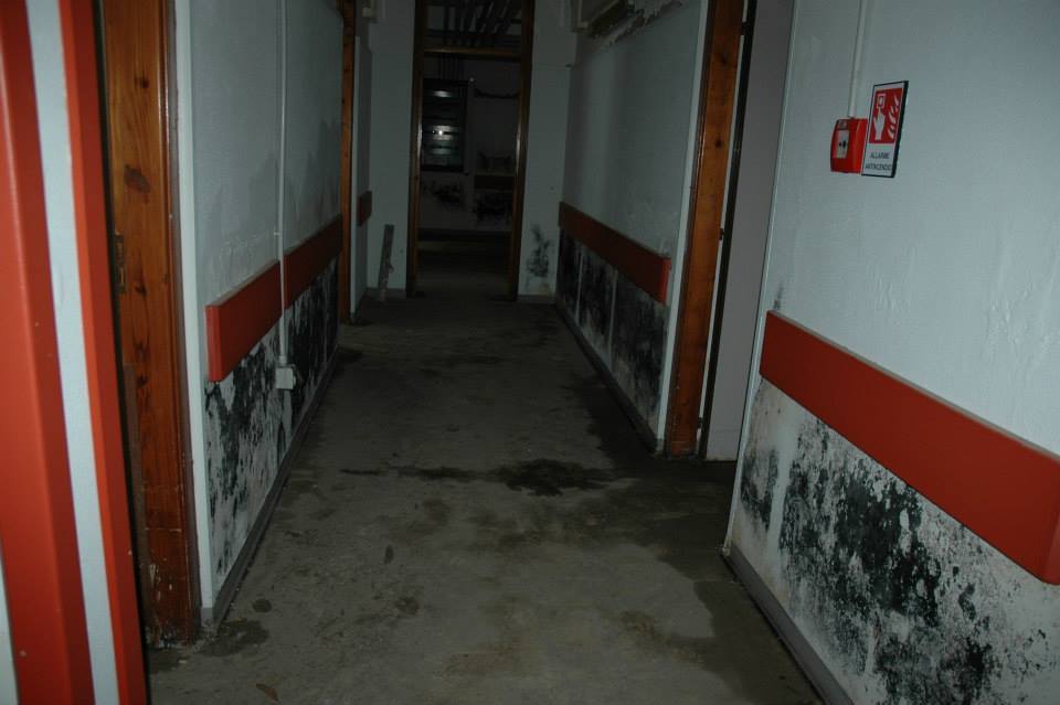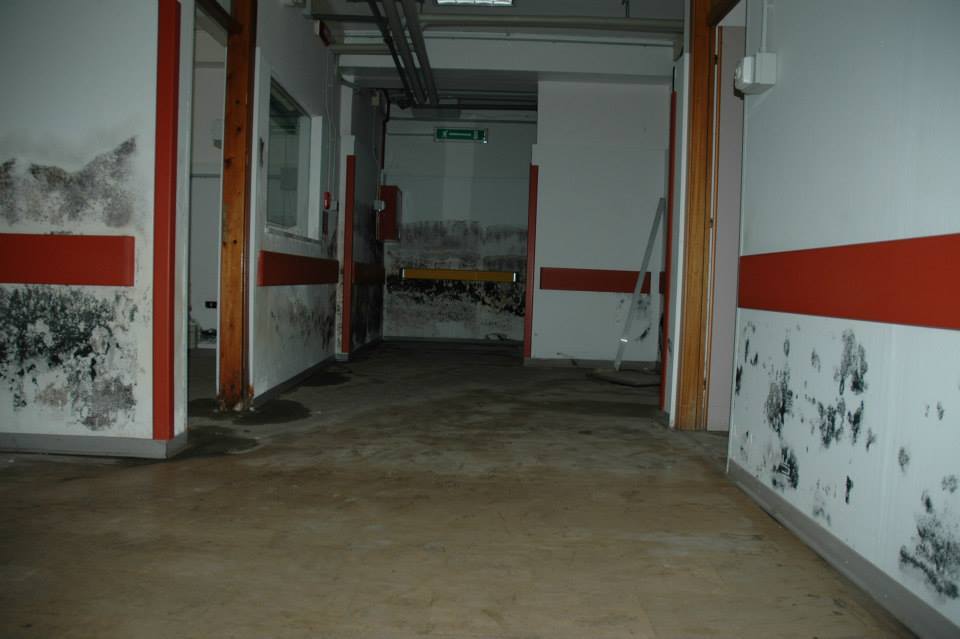 Apparecchiature in disuso, mobili mai utilizzati e muri intaccati dalle infiltrazioni nell'ospedale restaurato nel 2011