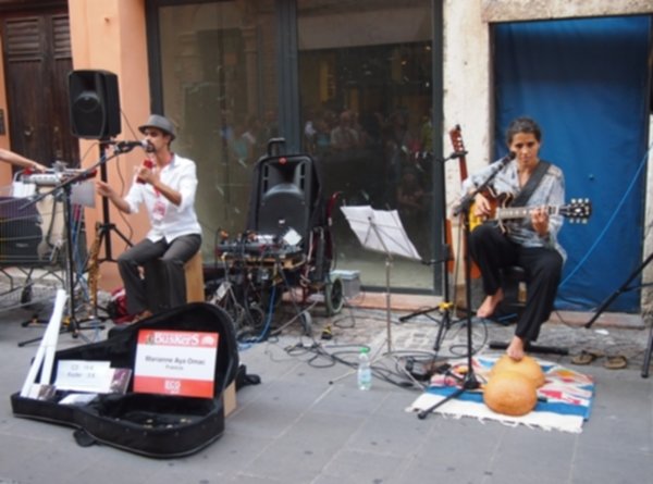 La parola chiave che sceglie per identificare se stessa e la sua musica è energia. Energia sprigionata sia dalla vibrazione delle corde della sua chitarra che dalla sua splendida voce, quest’anno non accompagnata dai Ginkobiloba ma da Marius Welker, versatile suonatore polistrumentista di cajon, sax e flauto che l’accompagna anche con beat box e cori, formando un armonico duo dal sapore inconfondibile. Ma cosa rappresenta la musica per una cantante, compositrice e musicista che si esibisce con disinvoltura sia in strada che sul palco? “Per me la musica è un ponte tra il cielo e la terra – risponde Marianne – e non ho scelto io questo lavoro, ma penso che sia questo lavoro che abbia scelto me”.