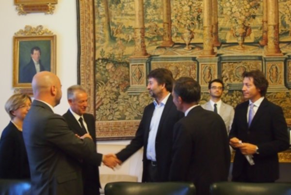 Il ministro Dario Franceschini dà battesimo alla Tenzone Aurea. Il ministro ai Beni Culturali, affiancato dal sindaco Tiziano Tagliani, dal presidente dell’Ente Palio Alessandro Fortini e dalla presidente del Fisb Antonella Palumbo, ha accolto in municipio i gruppi partecipanti al Campionato Nazionale Sbandieratori e Musici. Una cerimonia ufficiale e festosa per dare il benvenuto ai 20 migliori gruppi di sbandieratori sulla piazza nazionale che, con 926 atleti provenienti da quasi tutte le regioni d’Italia, si daranno battaglia questo fine settimane, sabato 12 e domenica 13 settembre, nelle piazze del centro storico estense per aggiudicarsi il drappo della vittoria.