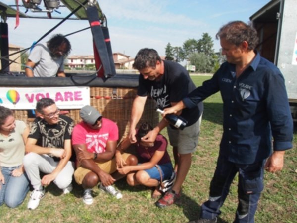 Un’esperienza in cui regna il gioco di squadra dall’inizio alla fine, dalla preparazione fino all’atterraggio. Tant’è che alla fine del viaggio si diventa una ‘squadra del volo’ grazie al battesimo dell’aria celebrato dal pilota Paolo Barbieri che ‘brucia’ ciocche di capelli e le bagna con lo spumante per battezzare i nuovi viaggiatori in mongolfiera “con la promessa che se vedrai una mongolfiera in difficoltà dovrai aiutarla”. Il rituale viene ripetuto 12 volte, tanti sono i partecipanti che abbandonano il cesto come adepti del volo più magico che ci sia perché rappresenta la vita, dove si sa da dove si parte ma non dove si arriva.