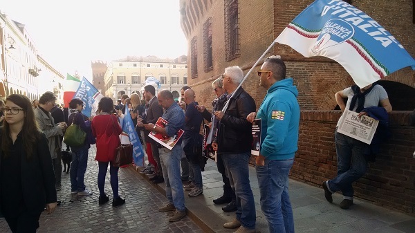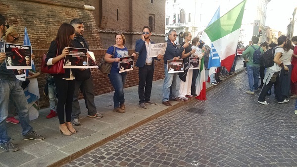 Qualche decina di appartenenti a Fratelli d’Italia, con in testa il portavoce provinciale e consigliere comunale di Ferrara Paolo Spath, ha contestato nel pomeriggio di domenica la presenza di Adriano Sofri al Festival di Internazionale.