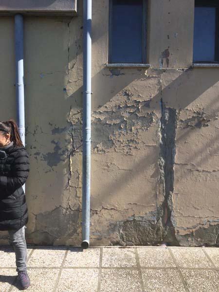 Anche l’elementare di via Venturini presenta diverse crepe di sviariati metri, cornicioni sgretolati con ferro interno “a vista” oltre che segni di umidità all’interno dei muri per tutto il perimetro della struttura, mentre alla scuola media di via Anna Frank “la parte che più fa orrore sono i bagni, brutti, vecchi e antigienici in quanto pieni di ruggine”. “Qui, come pure gli altri edifici scolastici, si possono notare gli anni di non manutenzione, sia esterna che interna. Esternamente si possono notare varie crepe di diversa natura, verticali, la scalinata d’uscita d’emergenza perde i pezzi”.