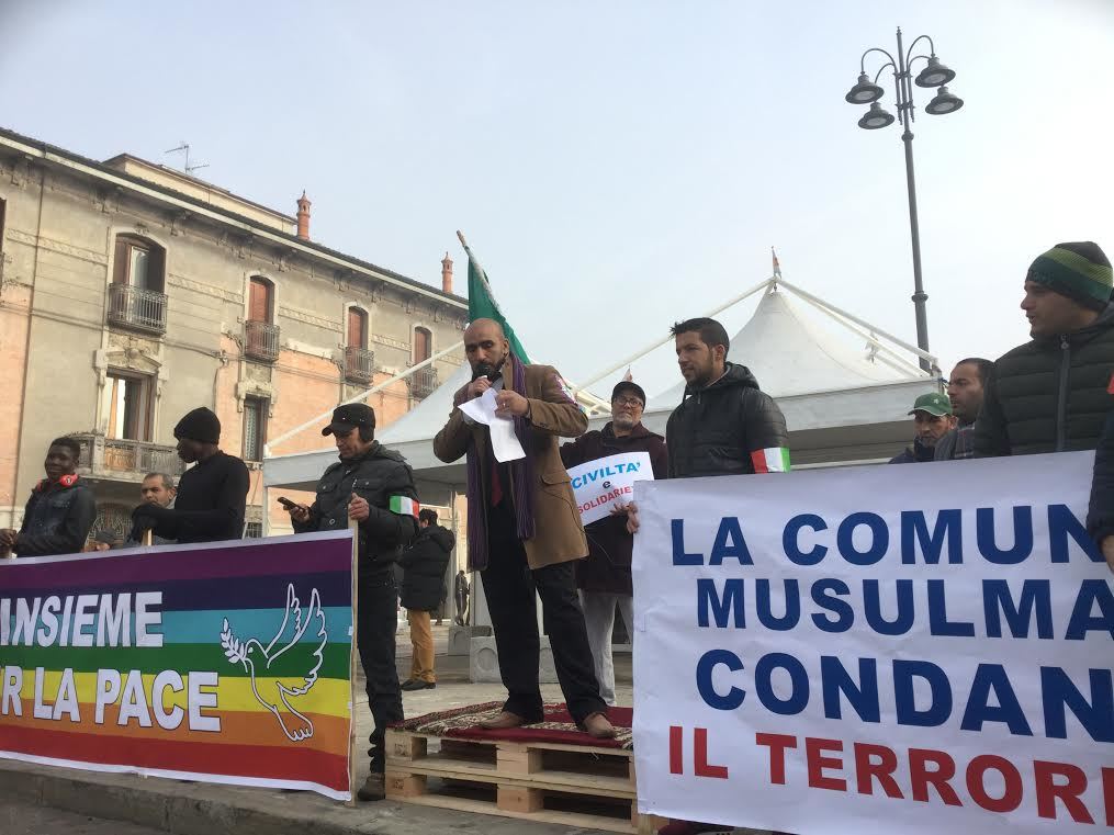 Hassan Samid durante una manifestazione a Bondeno contro il terrorismo