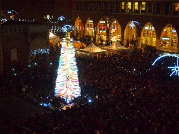 Il grande giorno è arrivato: chi l’ha bistratto e chi l’ha difeso hanno finalmente visto il chiacchierato albero di Natale illuminato. Molti scettici verso l’opera futurista in vetro di Murano, si sono ricreduti ammirando il gioco di luci che, dal basso, dà nuovi colori e trasparenze agli oltre mille tubi che si ramificano per otto metri di altezza. Altri non hanno cambiato la propria posizione e rimpiangono il tradizionale abete. Amato o odiato, sono tantissimi i ferraresi e visitatori che si sono accalcati in piazza Cattedrale per assistere all’accensione dell’albero, resa ancora più suggestiva dallo spettacolo delle fontane danzanti.