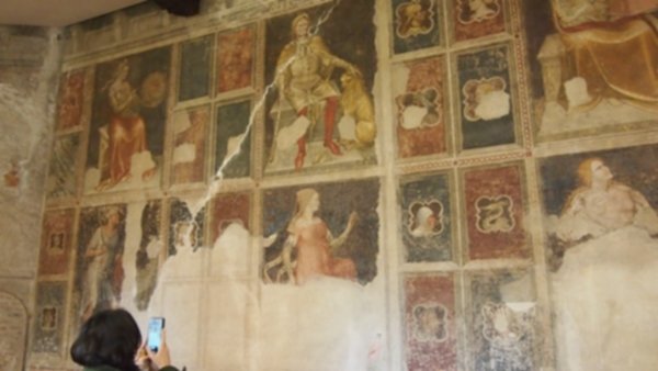 A dirigere la visita guidata è la dirigente generale del Mibact Carla Di Francesco che illustra con dovizia di particolari tutte le caratteristiche della casa: i solai decorati unici, le superfici esterne del loggiato, il pavimento originale, gli intonaci recuperati, gli infissi e altri elementi di dettaglio conservati, la fontana che finalmente torna a zampillare. Tutto restaurato tranne gli affreschi del salone dei Vizi e delle Virtù e della sala degli Stemmi. Per queste due aree affrescate è prevista una piccola chicca, ovvero un ‘cantiere aperto’ che permetterà ai visitatori accompagnati di salire sui ponteggi per vedere le fasi del restauro degli affreschi.