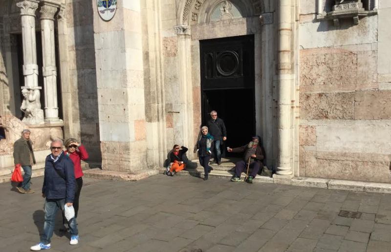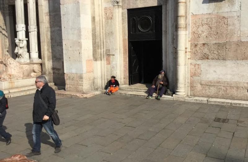 Nella stessa giornata un nostro giornalista ha sostato a più riprese davanti al sagrato, senza registrare fastidiosi atteggiamenti da parte dei questuanti. Qui sotto due immagini che lo documentano.