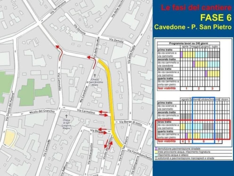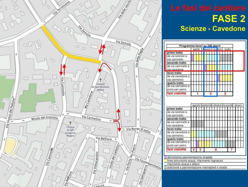 Per limitare i disagi agli automobilisti e alle attività commerciali, la strada verrà suddivisa in quattro lotti (da via Terranuova a via Cammello, da via Cammello a via Cavedone, da via Cavedone a via Carmelino e da via Carmelino a via Porta San Pietro). Al termine di ogni lotto, dopo la chiusura degli scavi da parte di Hera, l’amministrazione comunale provvederà al rifacimento della pavimentazione della strada e dei marciapiedi. Pertanto via Saraceno non rimarrà chiusa per tutta la durata dei lavori ma saranno chiusi solo i tratti di avanzamento del cantiere.