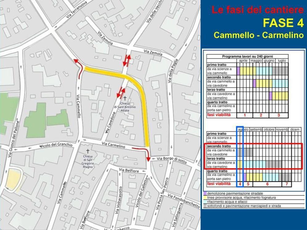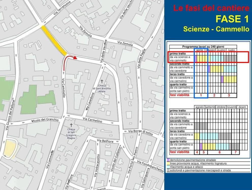 Questo lavoro per fasi creerà una sorta di cantiere a ‘serpentone’. Dopo il suo passaggio, la via cambierà faccia. Mantenuto l’asfalto, che non poteva essere sostituito dai ciottoli in quanto strada di accesso per automezzi a ztl, la novità sostanziale riguarda i marciapiedi che verranno allargati e realizzati in pietra. La scelta di favorire la fruibilità pedonale va a scapito dei parcheggi: l’allargamento dei marciapiedi, infatti, cancellerà definitivamente le aree di sosta per i residenti.