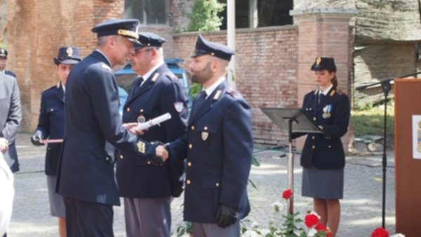 Dopo la relazione del questore, accolta da composti e sinceri applausi, si è proceduto alla consegna di riconoscimenti agli appartenenti alla polizia di Stato, particolarmente distintisi in attività di servizio. Tra questi il V sovrintendente Alessio Righetti, che l’anno scorso era stato premiato con una promozione per meriti straordinari, al quale è stato consegnato ancora una volta un riconoscimento, l’encomio, per aver dimostrato altruismo e abnegazione nell’adempimento del proprio dovere e grande spirito di sacrificio e coraggio nel mettere seriamente a rischio la propria incolumità in alcuni decisivi interventi.