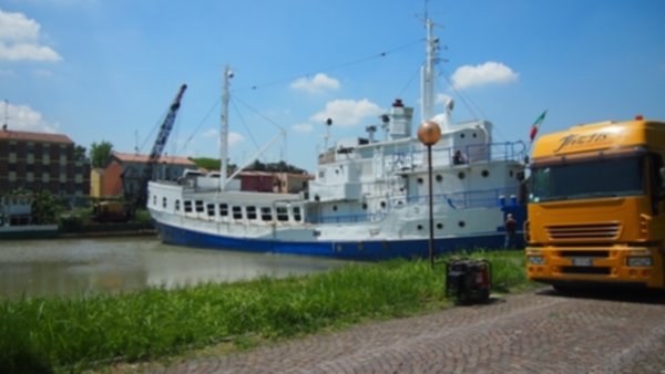 Quando i lavori di preparazione saranno finiti, la nave-locale verrà spostata nel giro di una giornata. L’ingegnere navale Padoan, che per ironia della sorte si chiama proprio Sebastiano, ha già effettuato un paio di sopralluoghi per prendere le misure di spessore della barca, fare le prove di galleggiamento e preparare le dovute precauzioni nel caso dovesse imbarcare acqua.