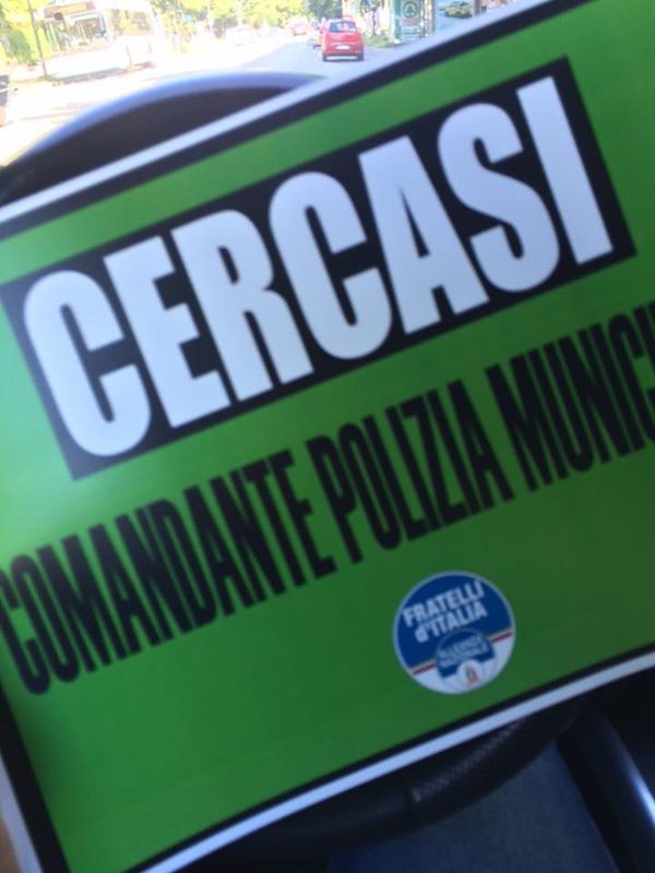 I provocatori cartelli esposti nel sit-in di Fratelli d’Italia davanti alla sede della Polizia municipale – che recitano “Cercasi comandante” – dopo l’episodio di aggressione verbale nei confronti di due vigilesse, provocano la reazione di Luigi Vitallio, segretario provinciale del Pd.
