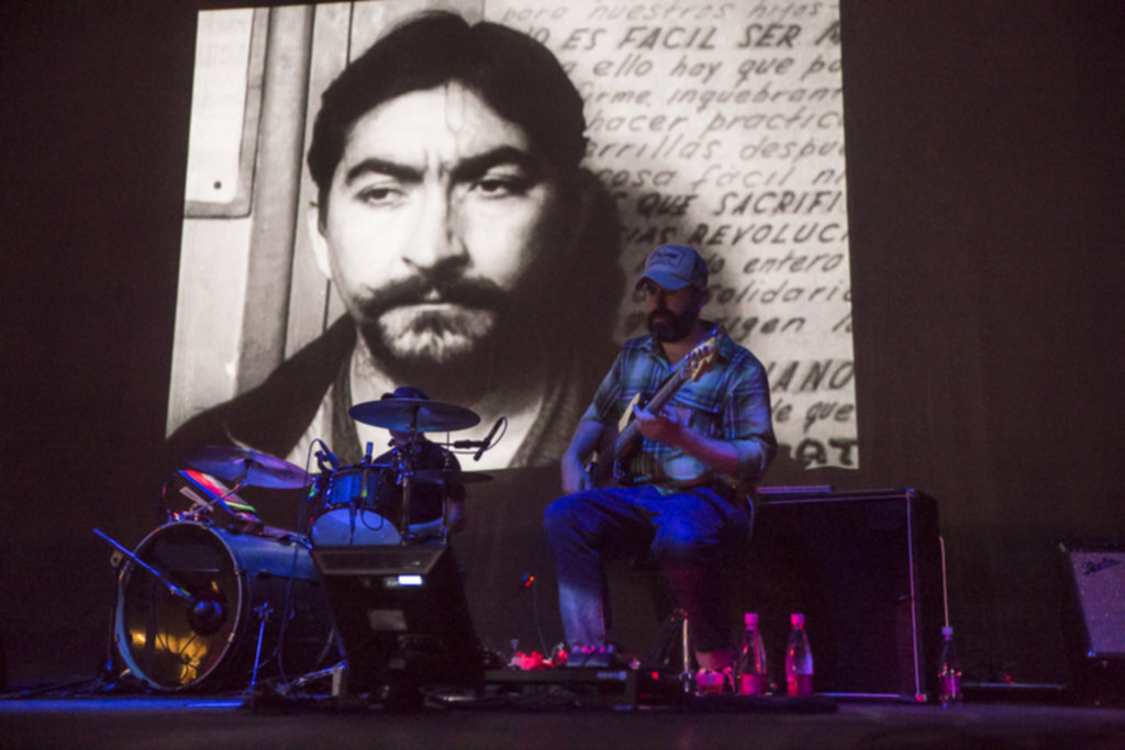 Con più di 1300 sedie occupate in piazza Castello, il concerto sembrava più una sorta di cinema all’aperto con musica dal vivo. Sul maxischermo scorrono le drammatiche immagini di “Atomic: Living In Dread And Promise”, l’acclamato documentario di Mark Cousins prodotto dalla Bbc in occasione dei 70 anni dalla tragedia di Hiroshima.