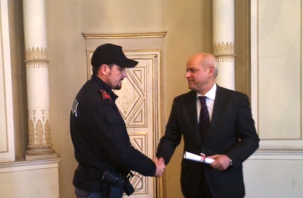 Per l’occasione il questore Antonio Sbordone ha deciso di indire una premiazione davanti a taccuini e fotografi “perché i nostri poliziotti sono bravi e si sacrificano in contesti e condizioni non sempre facili”. I riconoscimenti – si chiamano “Parola di lode” – sono stati assegnati ad alcuni componenti della squadra Volanti e della squadra Mobile (tra i quali anche il dirigente Andrea Crucianelli) e per due operazioni compite a maggio e giugno dello scorso anno.