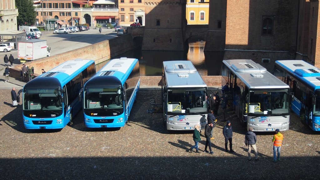 Comfort per i passeggeri, attenzione all’ambiente e accessibilità per i disabili sono state le linee guida dello ‘svecchiamento’ del trasporto pubblico che vedrà debuttare 12 autobus ibridi Man Lion’s City (impiegati principalmente sulla linea 11 verso Chiesuol del Fosso e sulla linea 6 per Porotto e l’ospedale di Cona); 4 veicoli Man Lion’s Regio lunghi 14 metri (indicati per le corse extraurbane affollate da pendolari e studenti per via del maggior numero di posti a sedere); e 7 Iveco Crossway (dedicati ai principali collegamenti extraurbani da/per Ferrara).