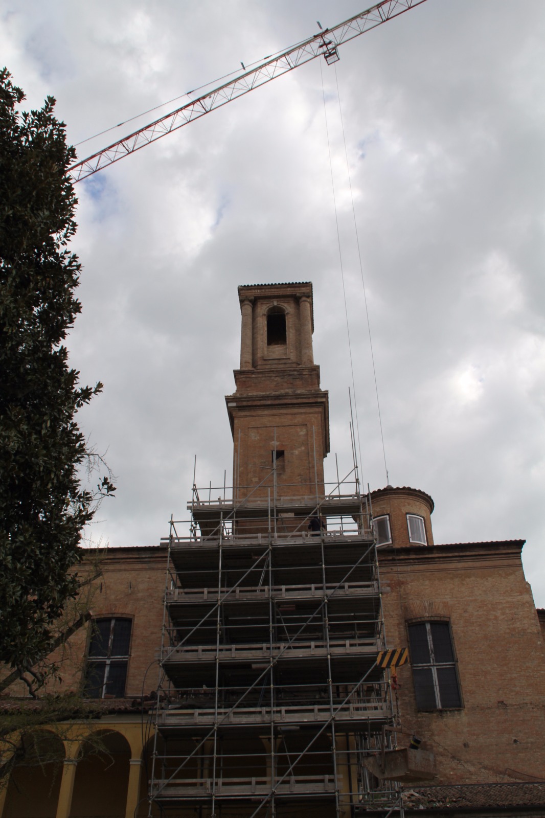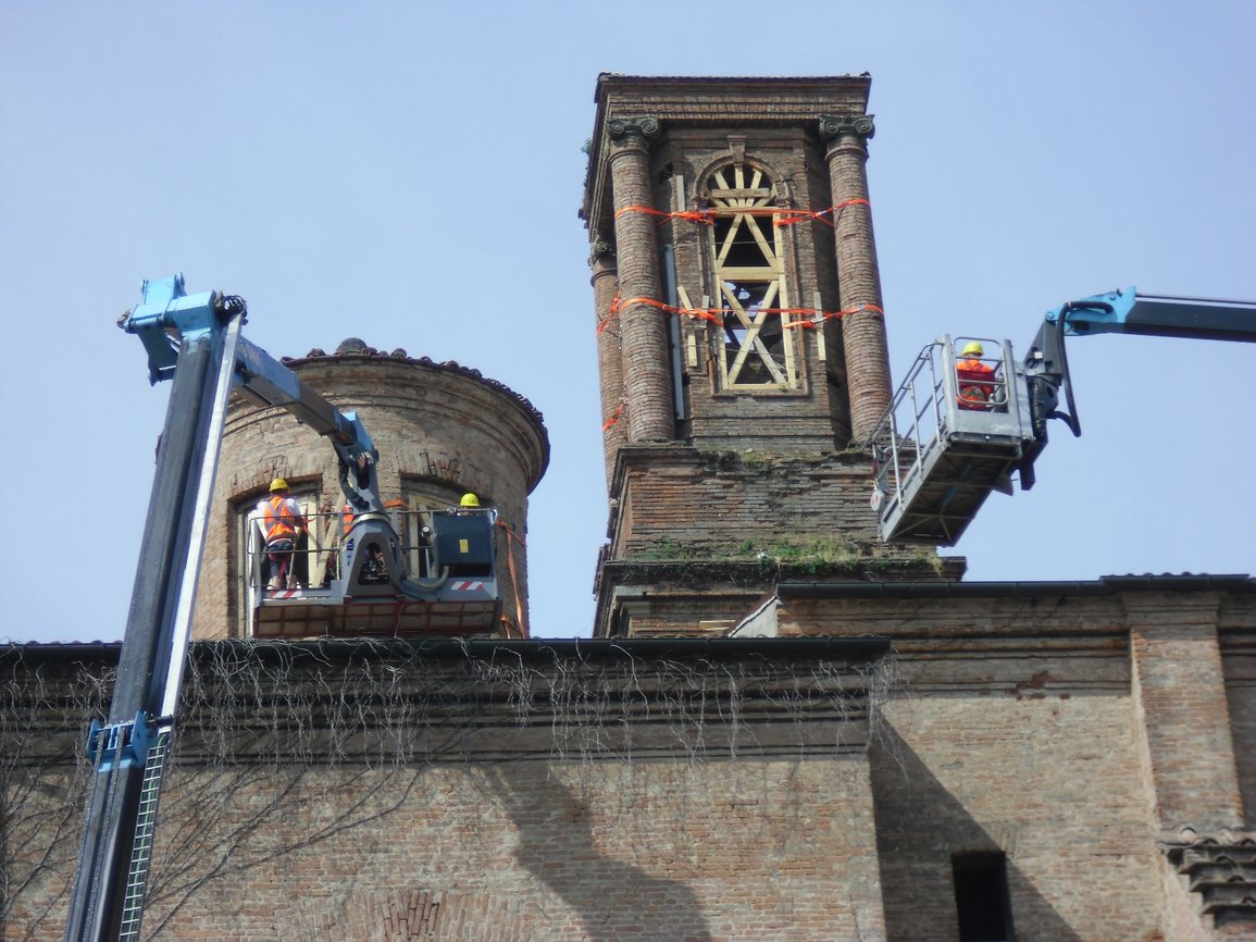 Per capire la vicenda occorre fare un passo indietro nel tempo. Precisamente al 20 maggio 2012, il giorno del terremoto a Ferrara. Il campanile della chiesa di San Lorenzo subì pesanti danni. L’allora presidente della Patrimonio Studi Adriano Orlandini corse ai ripari contattando una ditta specializzata a livello europeo nel restauro antisismico di edifici di culto, la Res.In.Tec. La torre gravava sopra alcune classi del liceo Cevolani e Orlandini fu felice profeta: incaricò la ditta tramite affidamento di puntellare la strutture per un intervento tampone d’emergenza.