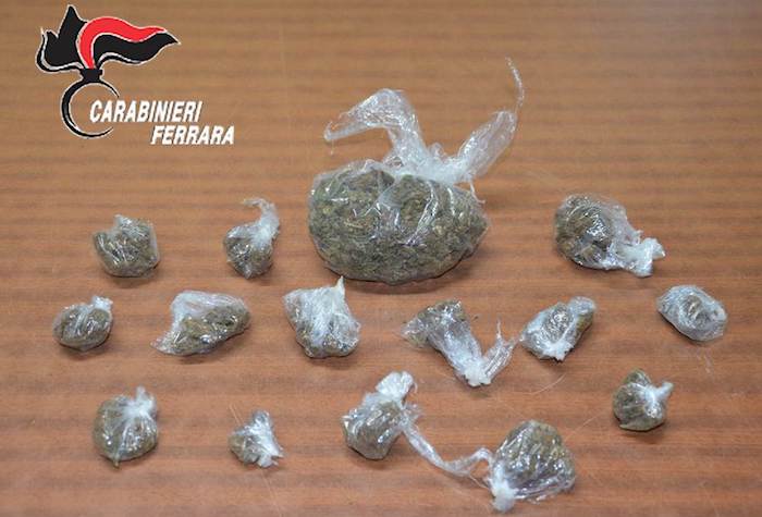 La perquisizione personale ha permesso di trovare, nascosti negli slip, due involucri in cellophane contenenti 80 grammi di marijuana suddivisa in 14 dosi pronte per essere spacciate.