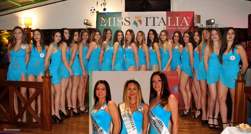 Le miss, dopo essere state presentate con nome, età, provenienza e aspirazioni, hanno sfilato con disinvoltura prima in longuette fascianti, poi in costume intero e fusciacca, sempre ondeggiando su tacchi 12 (anche 13, 14…) ogni volta sorridenti e, se pur ‘novizie’, già parecchio sicure di sé. Un’esperienza non nuova per Clarissa Righi che aveva già fatto pratica al concorso La + Bella di Ferrara.