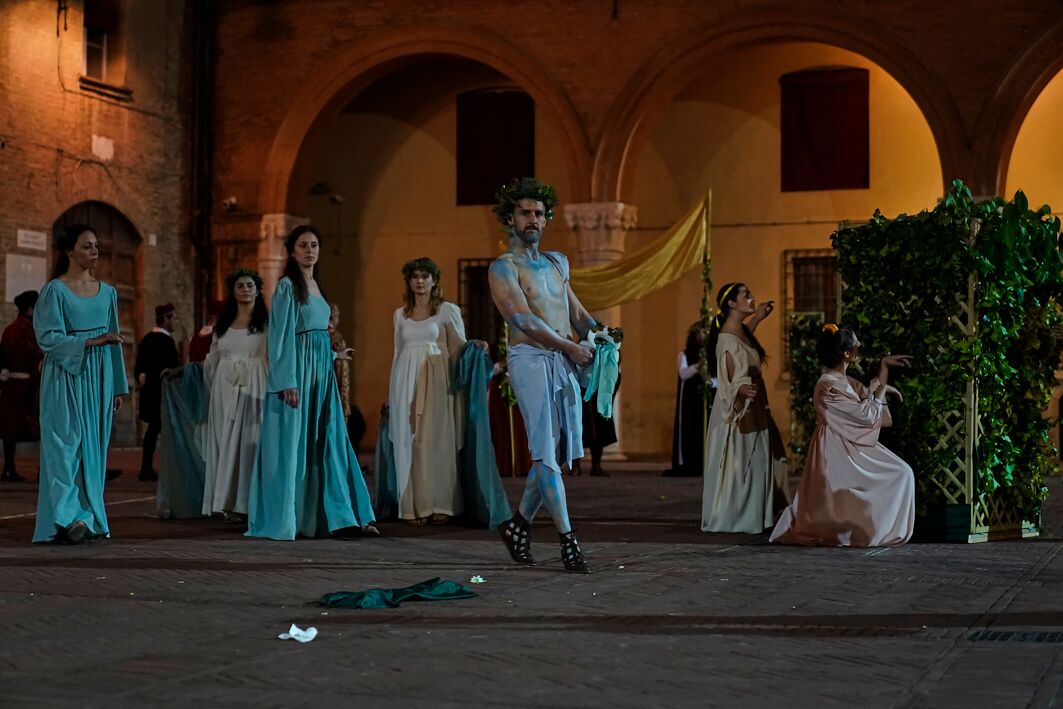 Le soavi melodie di Santa Maria in vado fanno viaggiare il pubblico fino alla mitologia greca, al mito di Apollo e Dafne, mentre per Santo Spirito è tempo di mascherata mitologica, più precisamente quella del 1432, organizzata dal siculo Marrasio in occasione della pace fra Milano, Firenze e Venezia. Ancora sacro, questa volta in salsa gialloblù, con San Giacomo che fa rivivere l’Annunciazione, un tema caro alla corte estense, la cui iconografia Quattrocentesca ha avuto interpreti come Botticelli e Leonardo.