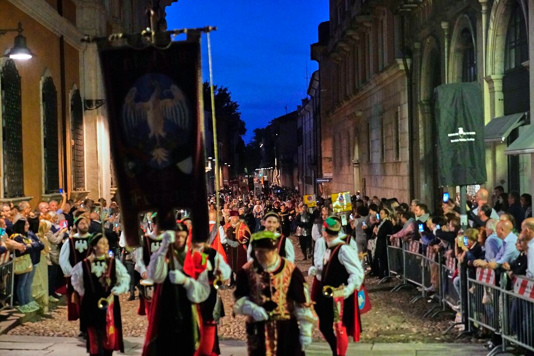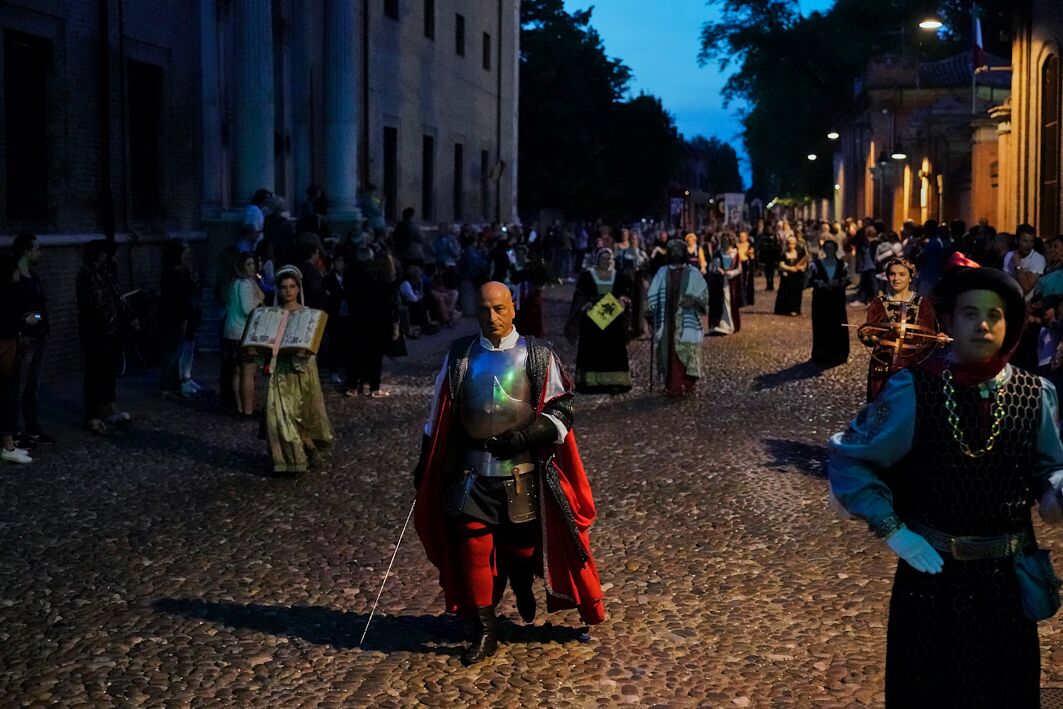 Tempo di “Nino Franco Visentini” e “Nives Casati” per le 8 contrade del Palio di Ferrara, i premi assegnati ai migliori del corteo storico e degli spettacoli a corte. Il tutto si è svolto sabato sera, prima la sontuosa sfilata – con omaggio all’astrologo e consigliere di Ercole I e Alfonso I Pellegrino Prisciani -, che ha portato i mille figuranti dalla “Porta degli Angeli” a piazza Municipale, dove dopo essersi presentati davanti all’Araldo si sono sfidati armati di lance, spade ma anche balli e ricevimenti matrimoniali.