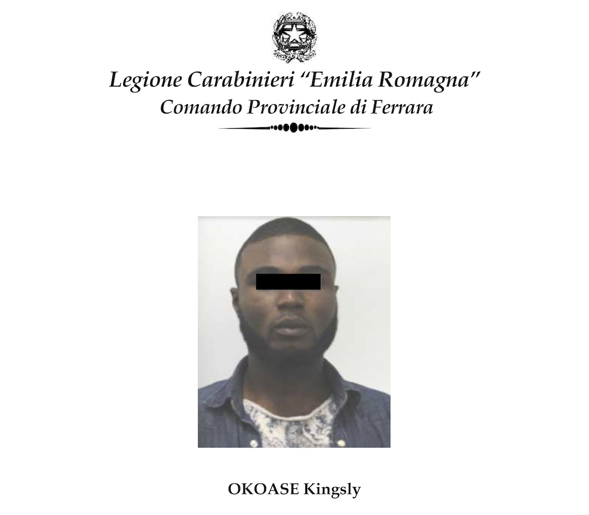 I carabinieri lo hanno quindi condotto in caserma per i necessari approfondimenti dove, una volta concluse le procedure di identificazione, è emerso che si trattava proprio di Kingsly Okoase, sul quale pendeva il “fermo di indiziato di delitto” emesso in data 30 agosto dalla Procura della Repubblica di Ferrara per il reato di tentato omicidio aggravato.