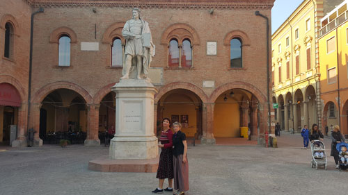 Natalia e Giulia in previsione del loro viaggio in Italia si sono un po’ documentate sul Guercino, Bonzagni, Galletti, Ugo Bassi e hanno deciso che valeva la pena di fare un salto a Cento tanto più che potevano contare su un molto probabile “supporto” da parte di membri dell’associazione.