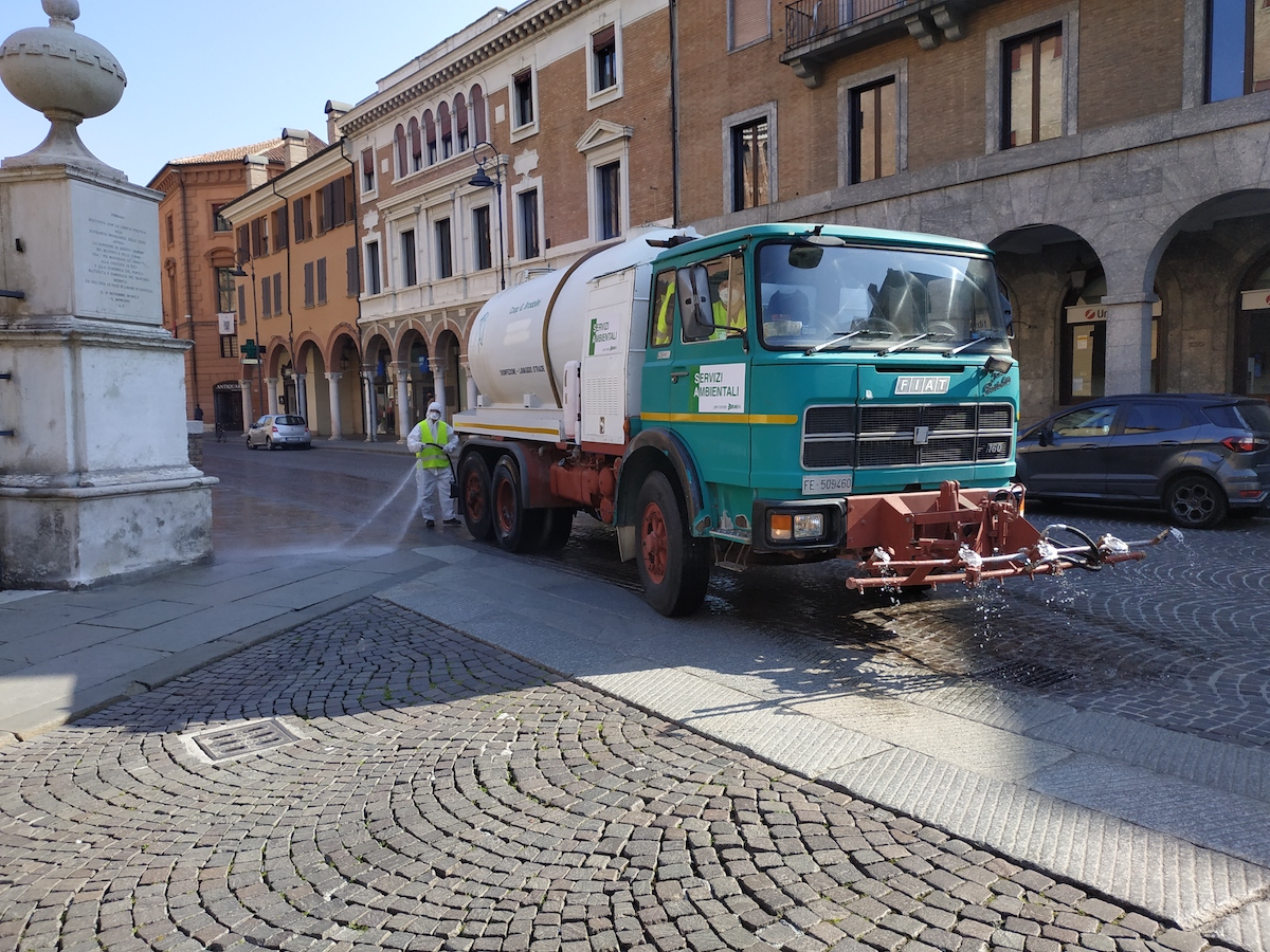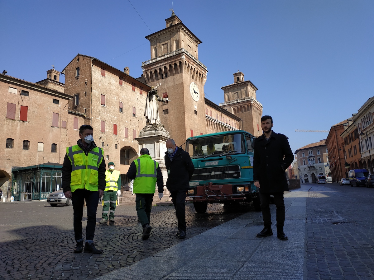 Anche Ferrara si aggrega alle città e ai centri che le provano tutte per limitare la diffusione del coronavirus Sars-CoV-2, compresa la sanificazione di strade, marciapiedi e porticati. Da mercoledì mattina è partita l’attività di “pulizia straordinaria” con un autobotte e una ‘lancia’ che passeranno per molte strade cittadine spruzzando acqua contenente un additivo enzimatico.