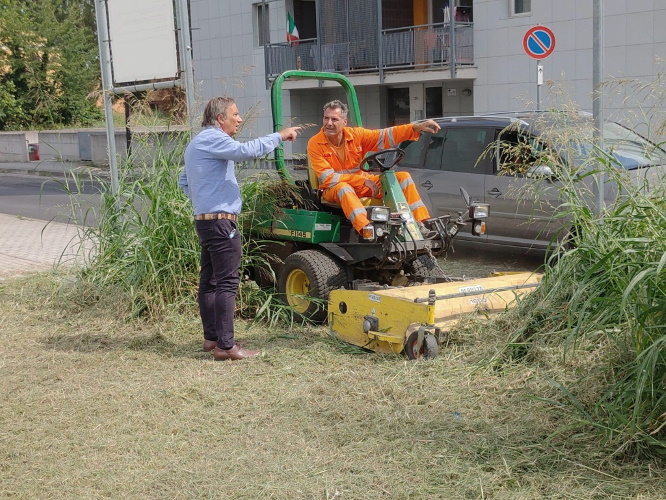 Con queste parole l’assessore Andrea Maggi ha accompagnato i sopralluoghi della mattinata, nel giorno della partenza della task force del verde tra città e frazioni. Ventidue squadre complessive che fanno capo a Ferrara Tua sono in campo, operatori del Comune sono stati assegnati agli interventi urgenti, addetti specializzati contro le piante infestanti, un piano d’azione di diserbo manuale è stato previsto per le mura e interventi specifici per i cimiteri: sono le risorse e i mezzi al lavoro da oggi per liberare strade, aree verdi e ciclabili dall’erba in eccesso.