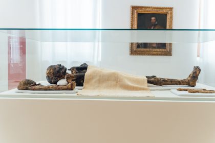 A stupire il pubblico sono anche le due mummie egizie, di mamma e bambino, che sono al centro del piano nobile del Palazzo. Va chiarito che a Miani non interessavo affatto le antichità egizie, oggetto delle brame di infiniti altri “esploratoti”, bensì le popolazioni che incontrava e che lo accoglievano. Ma queste mummie no sono qui a caso: sono il dono fatto a Rovigo da un altro rodigino illustre, Giuseppe Valsè Pantellini, che negli anni di Miani aveva l’incarico di accogliere al Cairo le delegazioni reali ed imperiali lì in arrivo per l’inaugurazione del Canale di Suez.