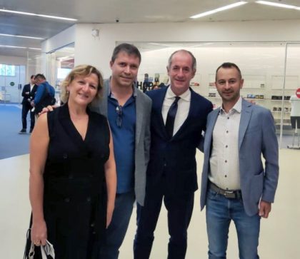 Nella foto da sinistra: Sondra Coizzi, Francesco Peotta (sindaco di Barbona, Padova), Luca Zaia, Nicola Zanca (sindaco di Gaiba)