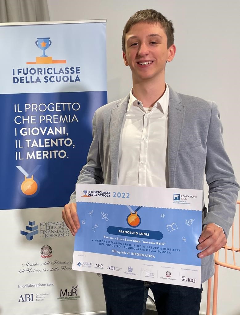 Prima della premiazione, i vincitori sono stati impegnati il 14 e 15 dicembre nel “Campus dei Fuoriclasse”, due giornate di lavoro con esperti accademici e del mondo imprenditoriale alla Liuc-Carlo Cattaneo e al museo del Risparmio di Torino. Tra i 68 premiati di quest’anno c’è, per il secondo anno consecutivo, Francesco Lugli, studente della 5ᵃU del liceo scientifico Antonio Roiti che, dopo aver conquistato la medaglia di bronzo ai Mondiali di Singapore, ha vinto le Olimpiadi Italiane dell’Informatica del 2022.