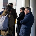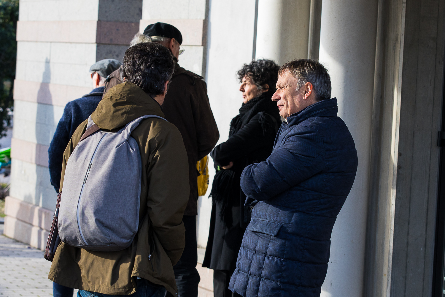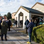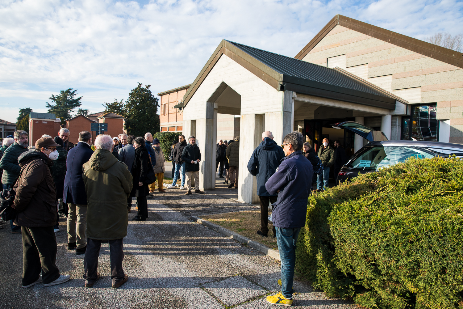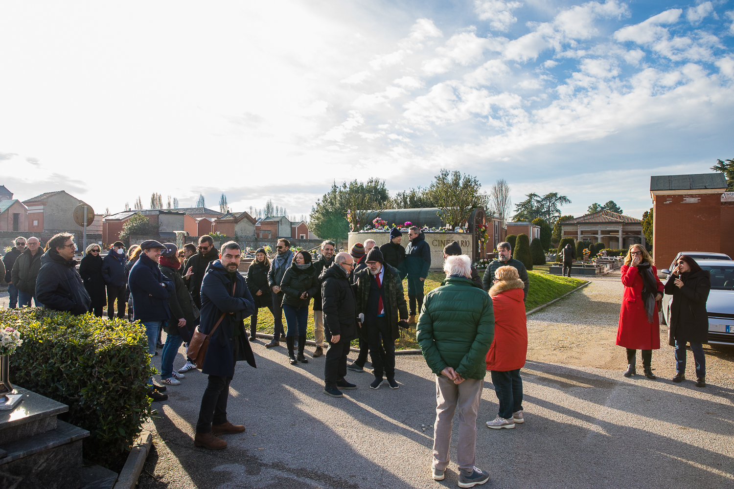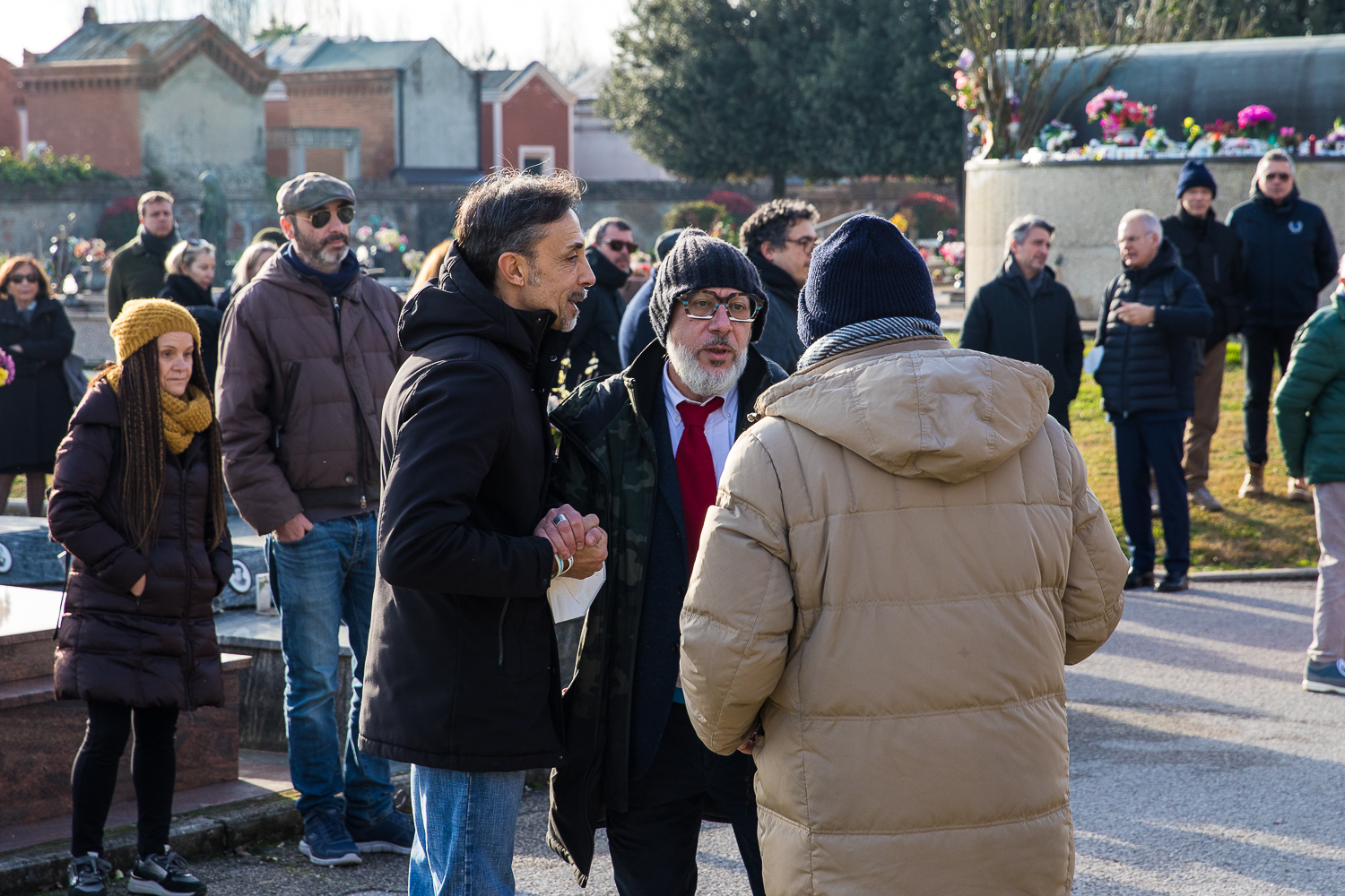 E’ il momento del congedo. Fuori dal tempio sciorinano i presenti. Si notyano le figure dell’ex sindaco Tiziano Tagliani, dell’architetto Andrea Malacarne ex presidente di Italia Nostra, Di Barabra Diolaiti e Sergio Golinelli dei Verdi, ex assessori in Comune e Provincia, e dell’attuale assessore Andrea Maggi.