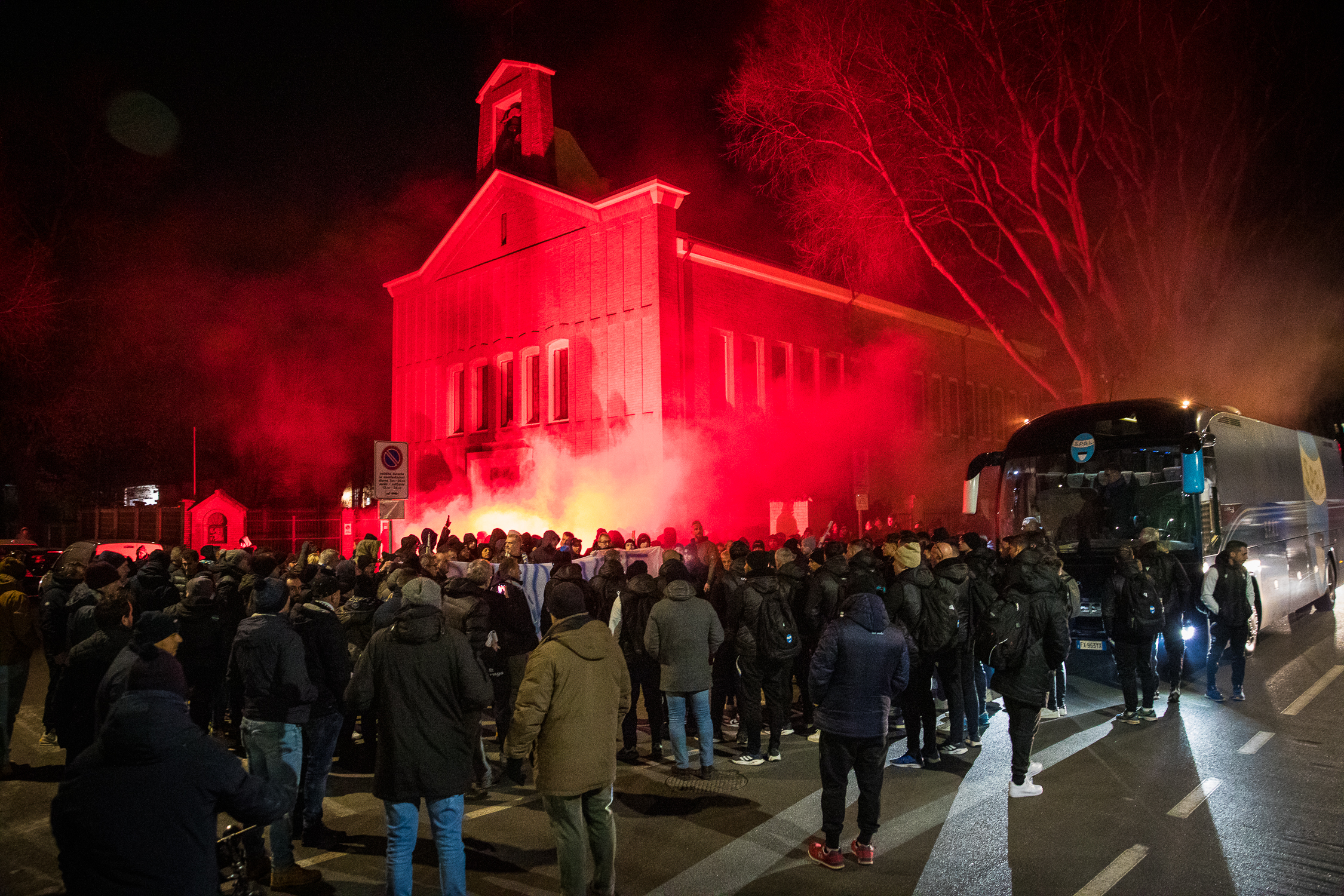 I tifosi hanno atteso il pullman della squadra di rientro dalla trasferta di Venezia: "Presidente assente". Domani se ne saprà di più sul futuro dell'allenatore
