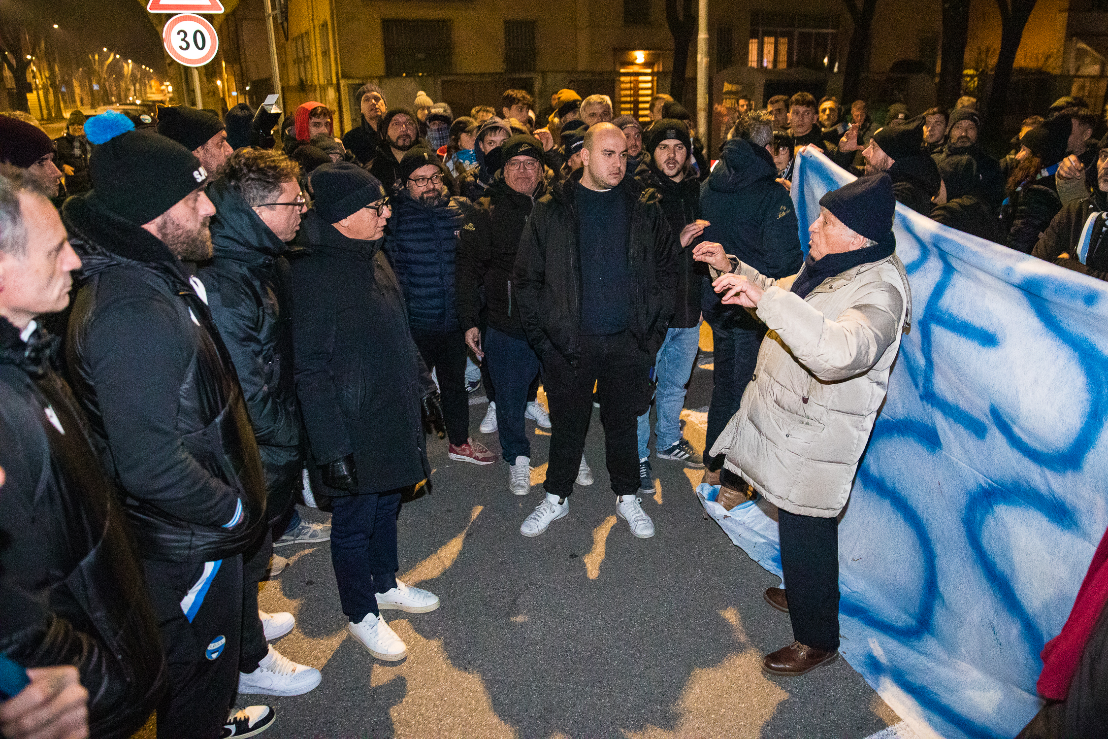 “Tacopina dov’è?” è stato infatti il coro più gettonato da parte dei circa 200 tifosi biancazzurri che, dietro lo striscione “Presidente assente”, si sono radunati per chiedere “solo rispetto” a una dirigenza che, a loro dire, in questo delicato momento, non sembra essere al fianco della squadra e della città, ma non sono stati risparmiati nemmeno Dickmann e compagni con i classici “Noi vogliamo gente che lotta” a “Tirate fuori i coglioni”.