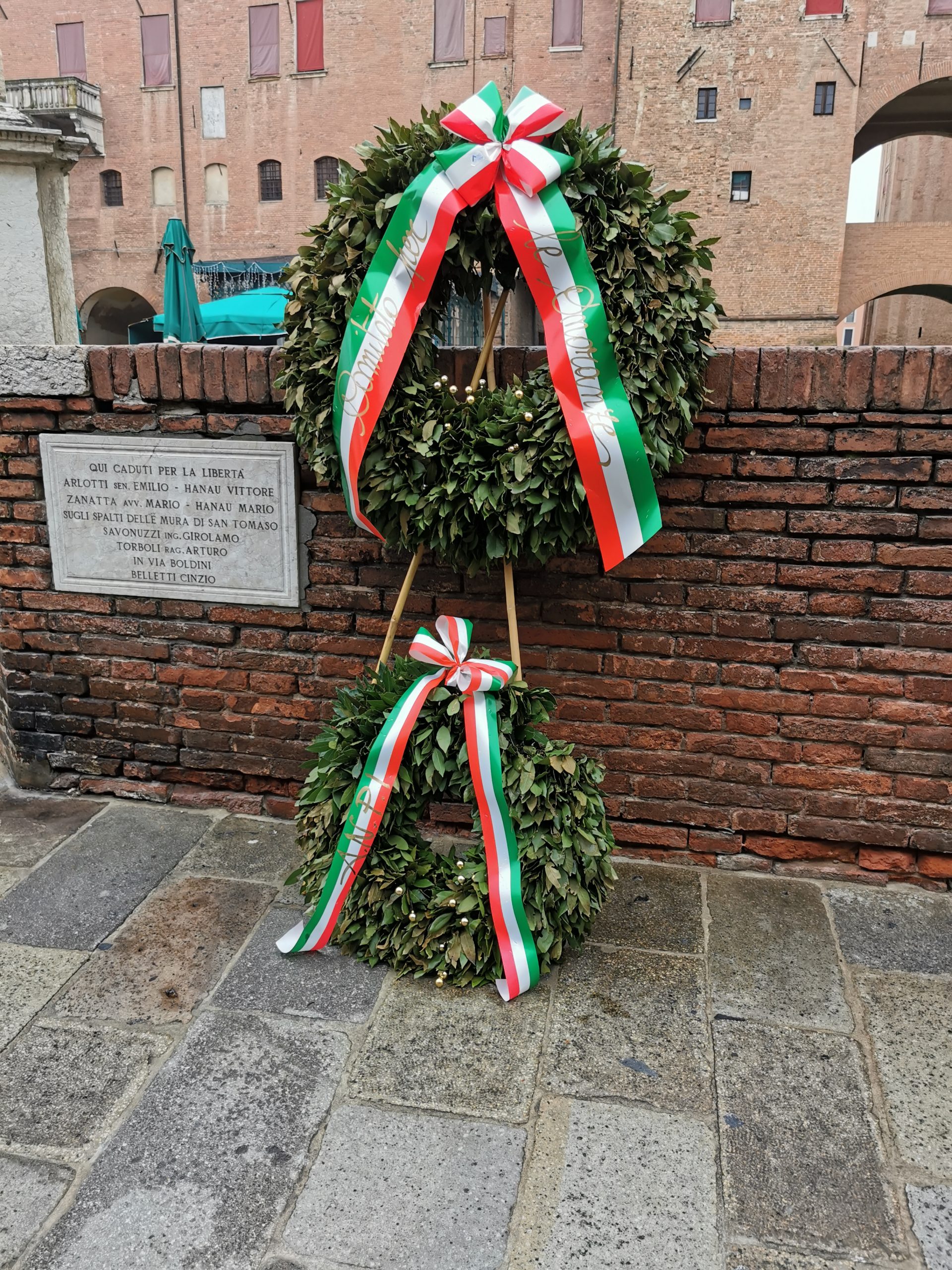 È tornata al suo posto la corona d’alloro che ricorda l’eccidio del Castello Estense del 15 novembre 1943, dopo la denuncia dell’Anpi provinciale che aveva inviato la segnalazione alla questura di Ferrara, immediatamente attivatasi nelle indagini eseguite dalla Digos.