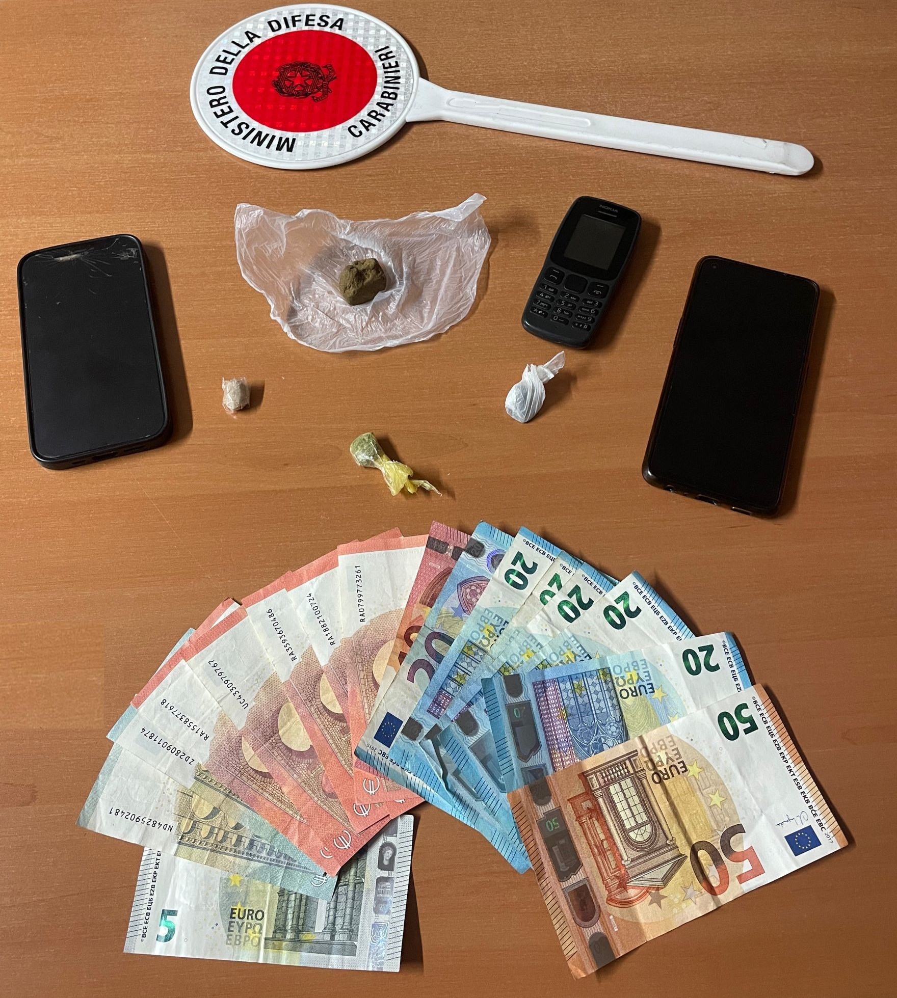 Con sé i due fermati avevano una dose di eroina, una di hashish, una di marijuana, quasi sette grammi di hashish, e 235 euro, ritenuti dagli inquirenti provento dell’attività di spaccio.