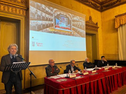 A intervenire sul tema, al Ridotto del teatro, sono stati Marco Gulinelli, assessore alla Cultura del Comune di Ferrara, Michele Placido, presidente della Fondazione Teatro Comunale di Ferrara, Francesco Micheli, presidente dell’Associazione Ferrara Musica, oltre a Moni Ovadia, direttore generale della Fondazione Teatro Comunale di Ferrara, Dario Favretti, direttore organizzativo dell’Associazione Ferrara Musica, e Marcello Corvino, direttore artistico della Fondazione Teatro Comunale di Ferrara.
