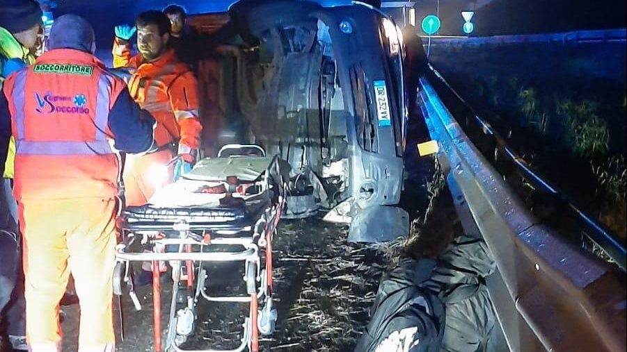 Le persone risultano residenti in provincia di Modena e stavano rientrando dall’aeroporto di Venezia. L’autista, negativo all’alcol test, pare che sia stato colpito da un colpo di sonno e abbia perso il controllo del mezzo che si è capovolto