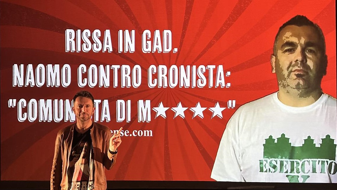 Scanzi immagina poi di cercare su google “Naomo Lodi”. Ed ecco uscire in triste carrellata gli articoli sulla casa popolare occupato con un reddito da migliaia di euro al mese, il pass per disabili mantenuto nonostante scorrano video in cui getta bombole e materassi dalle finestre del Palaspecchi, la condanna per non aver pagato i contributi ai suoi dipendenti, i legami con un gruppo neofascista… Fino alle recenti offese a una cronista che stava documentando una rissa in Gad: “comunista di m***a”.